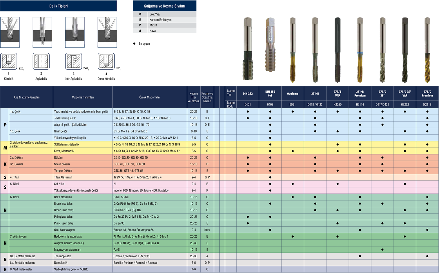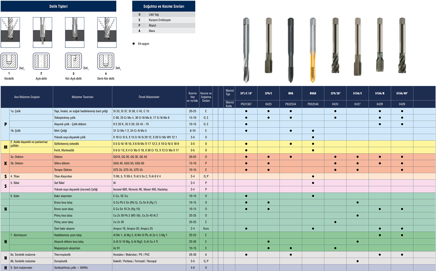 Malzemeye göre kılavuz seçimi & Kesme şartları